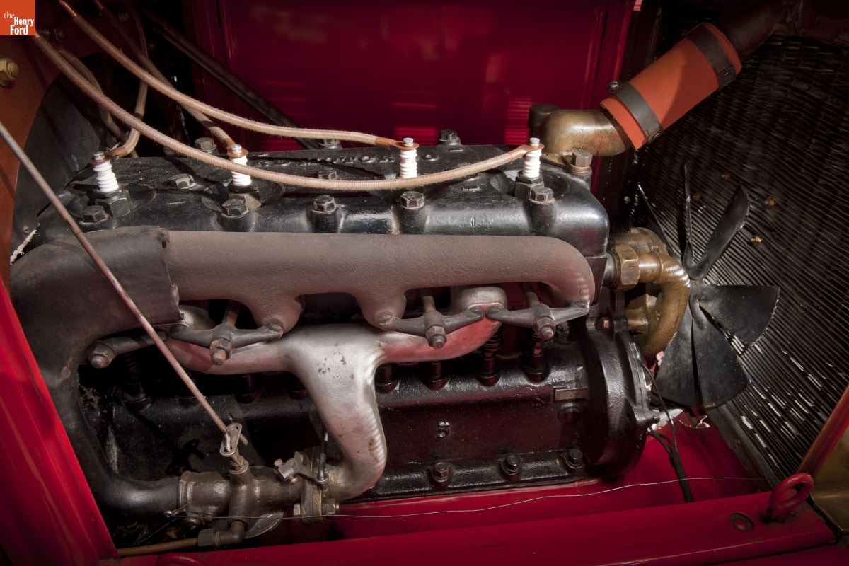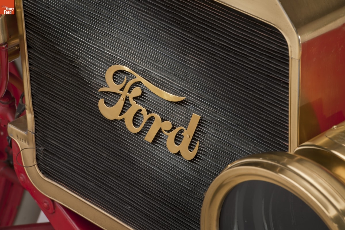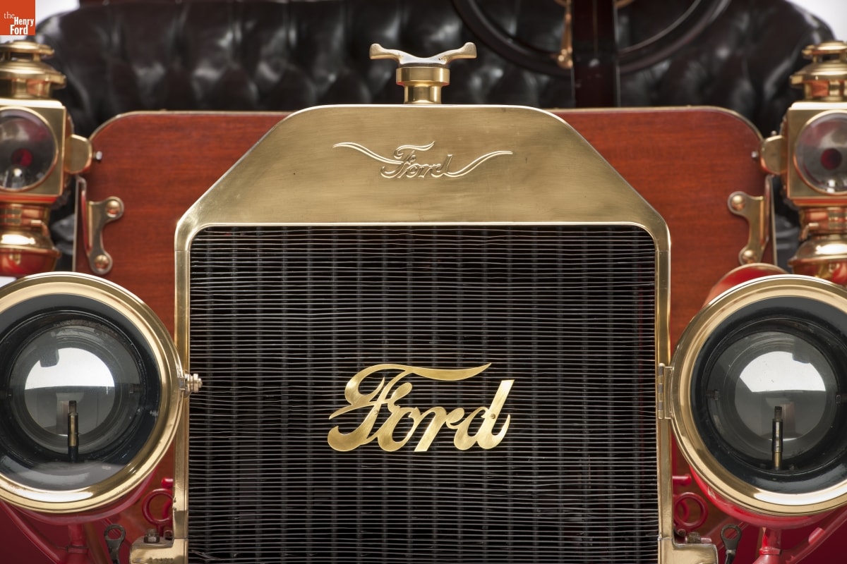 on plate, rear of car: FORD MOTOR CO. / DETROIT, MICH. on dash lamps: E&J / PAT / DEC. 9, 1908 / DETROIT, MICH. on headlamps: THE EDMUNDS & JONES MF'G CO / MODEL 466 / DETROIT on radiator & radiator shell: FORD on plate under front bench: FORD MOTOR COMPANY / DETROIT MICH, USA
