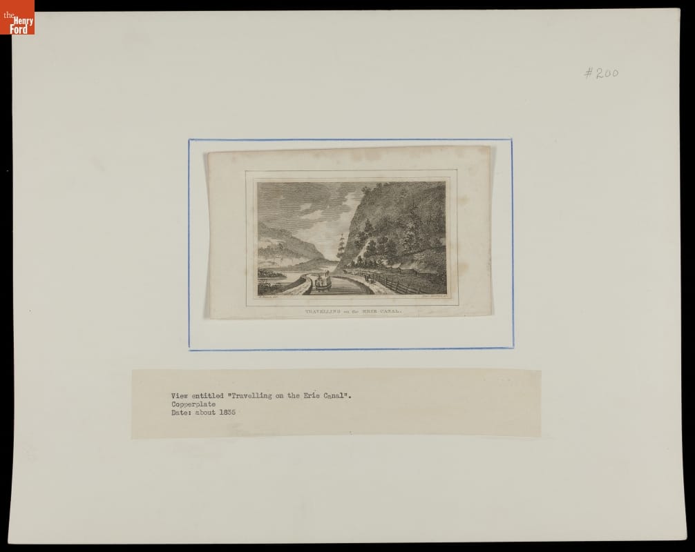 The first half of the 19th century was the heyday of canal construction in the United States, opening up new territories to settlement and commerce. The Erie Canal, connecting Albany, New York, with Buffalo, New York, began in 1817 and was completed in 1825. This circa 1835 engraving illustrates a packet boat traveling the canal.