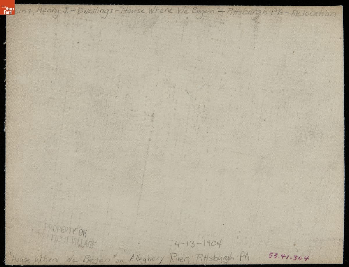 In 1869, H.J. Heinz started his processed food business at his parents' home in Sharpsburg, Pennsylvania. Though operations soon outgrew the house, it remained an important part of company history. In 1904, Heinz moved the house 5 miles down the Allegheny River to his Pittsburgh factory, where it served as a company museum for visiting tourists.
