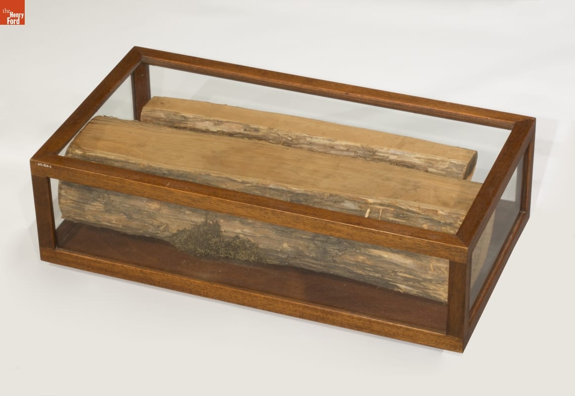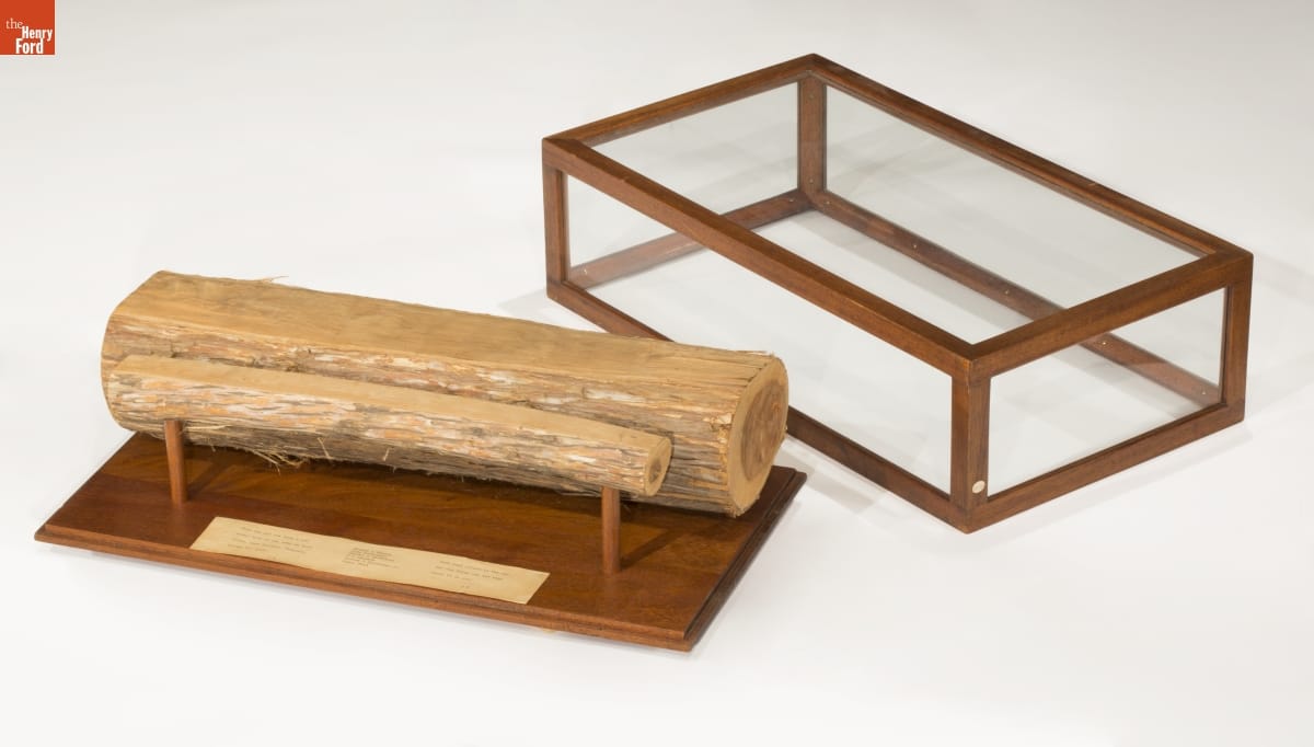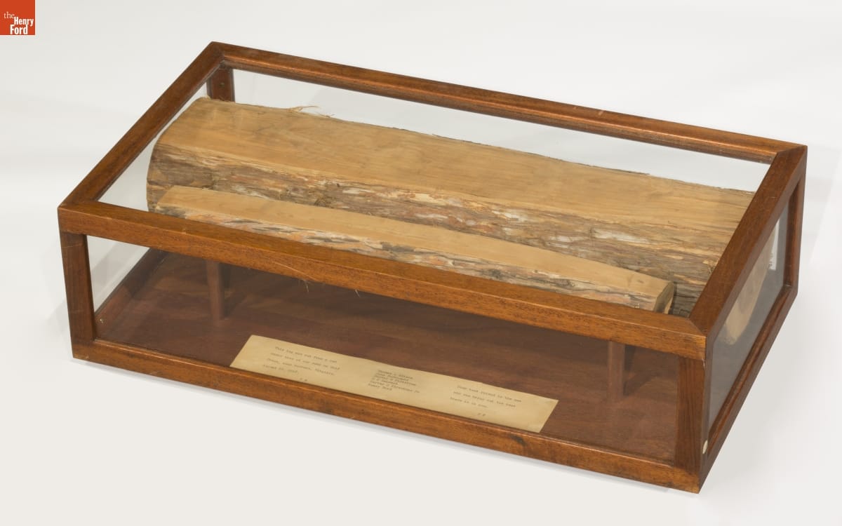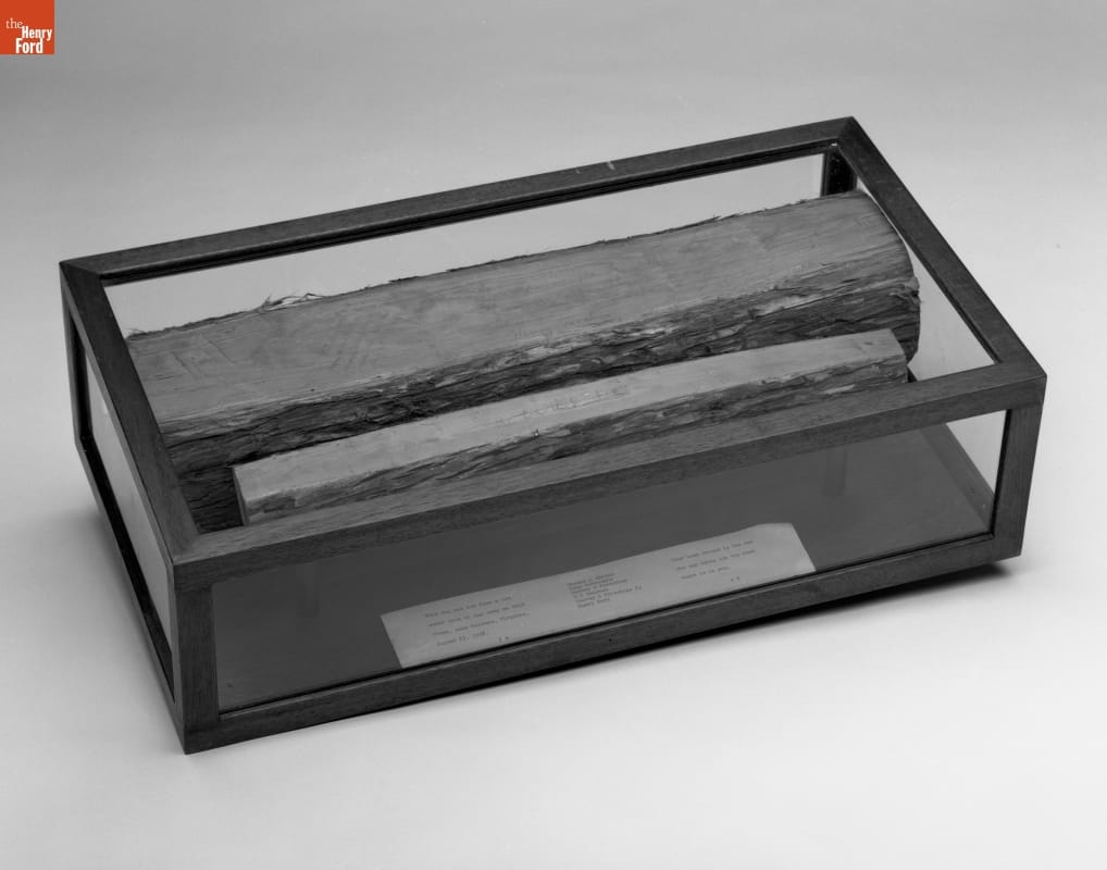 The larger of the 2 logs is signed by Thomas Edison, John Burroughs, Harvey S. Firestone, R.G.H. DeLoach, Harvey S. Firestone, Jr., and Henry Ford. The quotation on the larger log: "YOUR BEST FRIEND IS THE ONE WHO CAN BRING OUT THE BEST THERE IS IN YOU" is signed by John Burroughs. On the smaller log is pencilled "Robert E. Lee".
