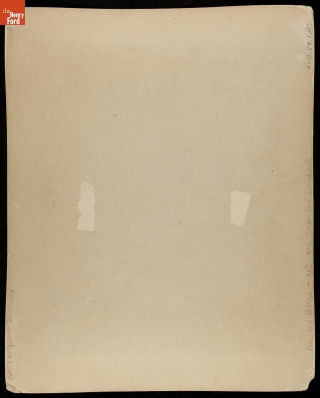 Since the early 1600s, Americans have built windmills to grind grain, pump water, drive machinery and generate power. The European-style windmill seen in this photograph was probably located along the Massachusetts seashore. Wind power drove the grain grinding machinery inside. Mill owners could position the mill's sails to catch the ocean breeze by moving the tail pole to turn the rotating cap.