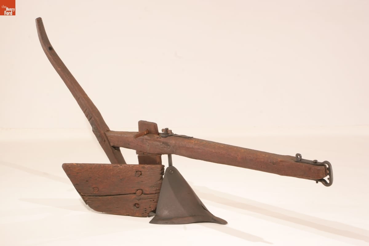 This light-draft, single-handle plow was used by Dutch farmers of the Hudson Valley of New York well into the 1800s, despite being surrounded by English communities. A key feature of this traditional plow, the distinctive pyramidal plowshare, was adapted by English neighbors to create the "Carey" or "Connecticut" plow, which became popular across the new American nation.