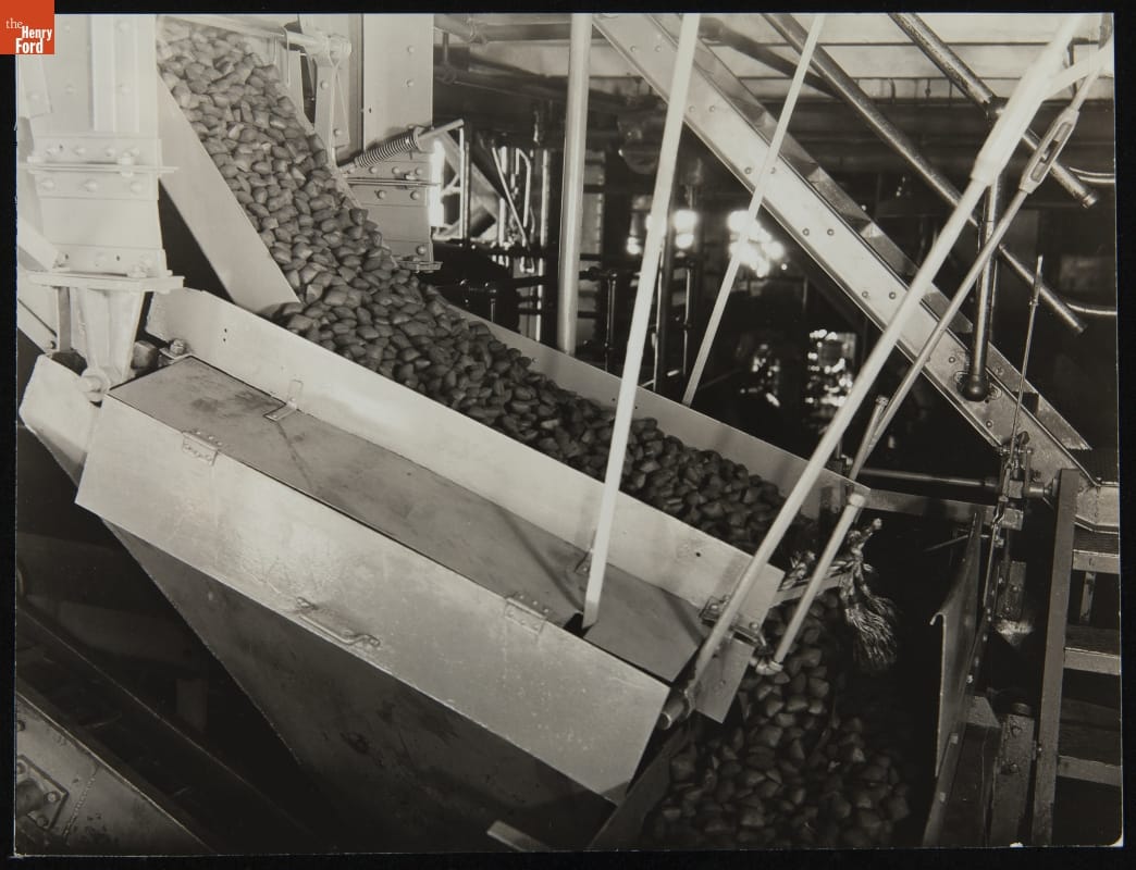 Charcoal Briquet Production at the Ford Iron Mountain Plant, Chute from Briquet Press to Dryers, 1935