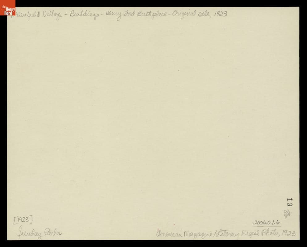 Sunday Parlor inside Ford Home (Henry Ford's Birthplace), 1923