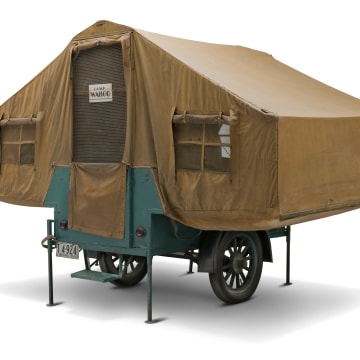The Gilkie trailer, according to this promotional brochure, freed travelers from their worries. Families could travel -- and stop -- wherever they pleased without fretting about the quality or availability of hotels. The trailer's compact folded design made for easy driving too. Its low profile reduced wind resistance and didn't block the rear window.