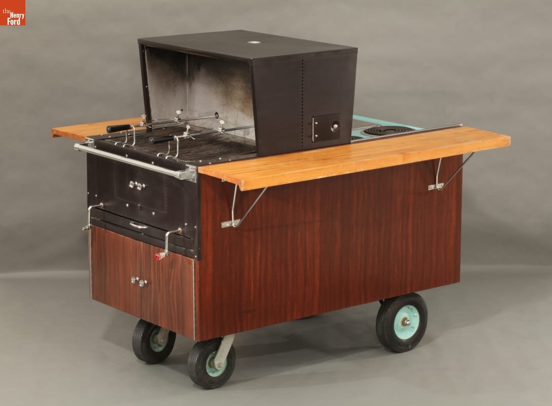 The upscale Partio -- an all-in-one electric range, charcoal barbeque, and rotisserie -- evokes America's sense of optimism during the Eisenhower era. This particular example was owned by Dwight D. Eisenhower and used by the former President at his Palm Springs, California, home. Vivid postwar styling aside, the Partio points forward to the present day interest in well-appointed outdoor living, as served up in lifestyle magazines and lavish catalogues.