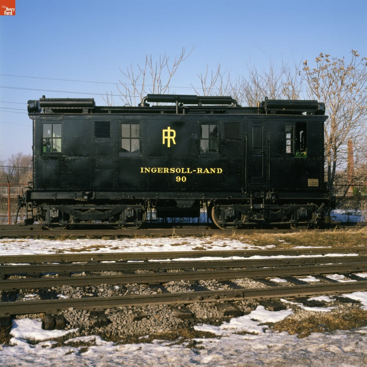 Outside markings: IR, #90/"Make Safety a Habit." ["Make Safety a Habit" was lettered on the locomotive as accessioned; it is not present on the restored locomotive] Present lettering in white: INGERSOLL-RAND / 90 (JCL 4/29/97) Builder's plates: OIL-ELECTRIC LOCOMOTIVE / CLASS B-B 120/120 -0-4HM840G / GENERAL ELECTRIC CO. / AMERICAN LOCOMOTIVE CO. / INGERSOLL-RAND CO. / G.E.CO. NO. / 10132 / U.S.A. / DEC 1926 / A.L.CO. NO. / 66752 Metal tag: 1935 / 2872