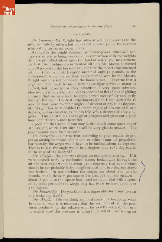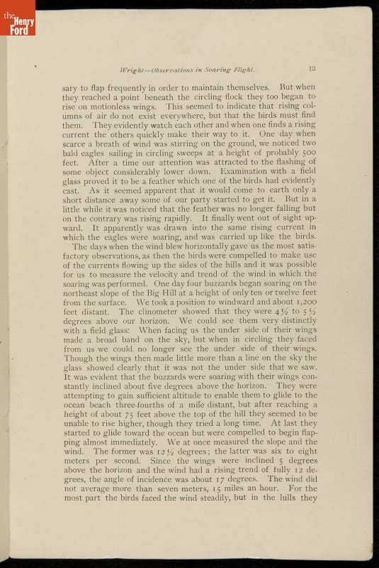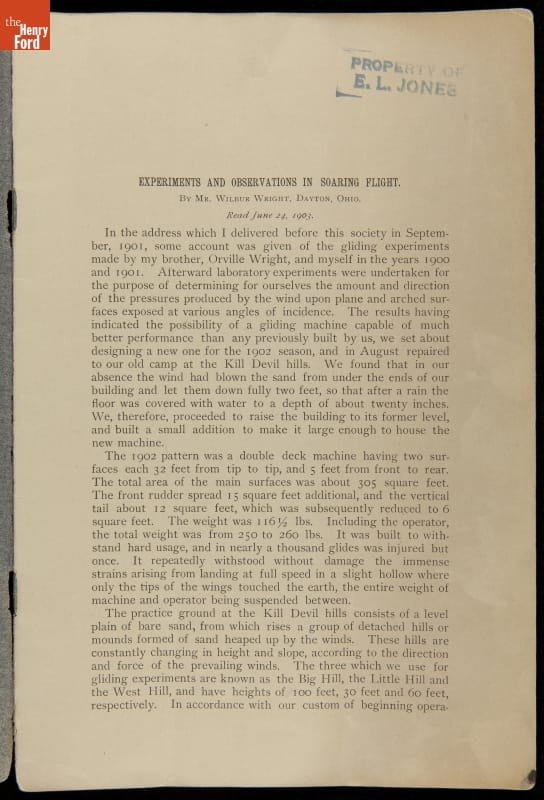 Pamphlet, "Experiments and Observations in Soaring Flight," Wilbur Wright, 1903