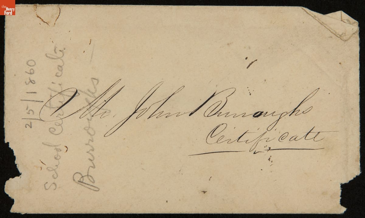 Before John Burroughs (1837-1921) became an internationally known naturalist and writer he earned a living as a teacher. In 1860, Burroughs -- twenty-three, married and an aspiring writer -- taught briefly in Essex County, New Jersey. Later that year he wrote an essay that was published in the Atlantic Monthly. The article gained widespread recognition and changed the course of Burroughs's life.