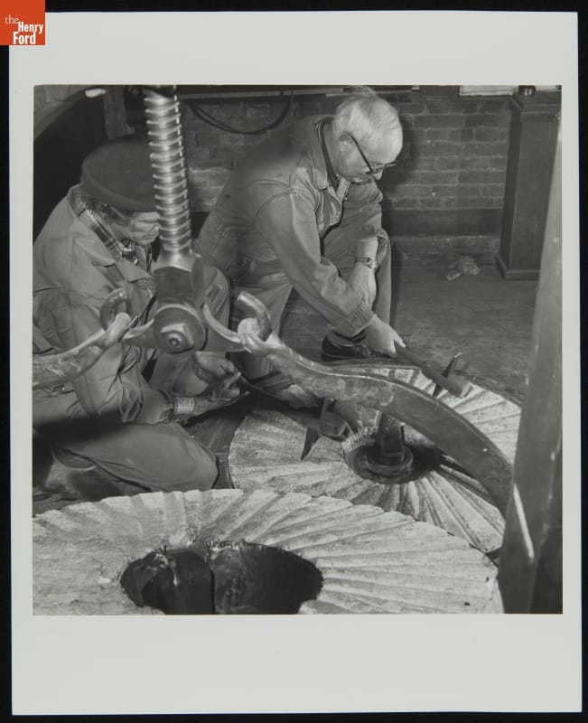 Cutting Millstones in Loranger Gristmill in Preparation for Summer, Greenfield Village, 1981