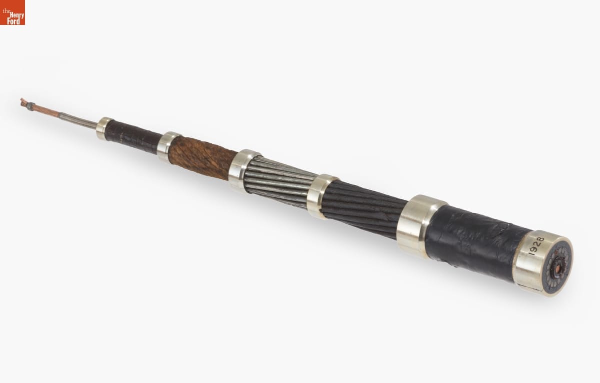 This cable is part of a display of transatlantic telegraph cables dating from 1858-1928. This cable section was part of a system laid from Newfoundland, Canada to Horta in the Azores in 1928.