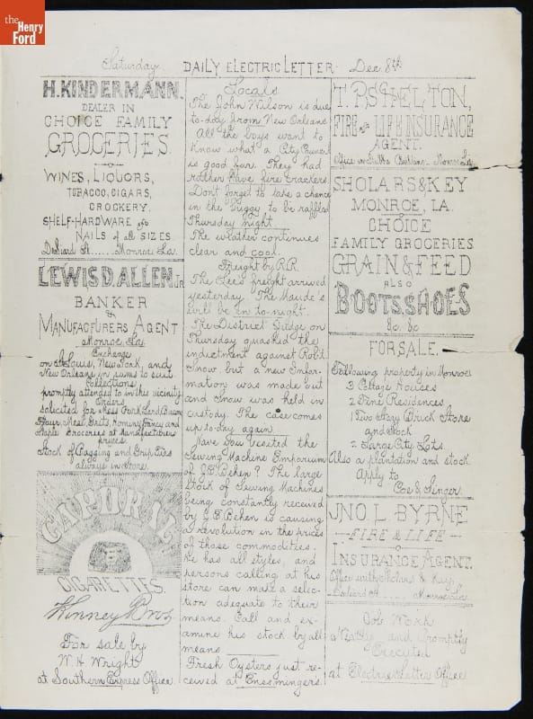 "Daily Electric Letter" Newspaper for December 8, 1877, Vol. 1, No. 69, Made with the Edison Electric Pen and Duplicating Press