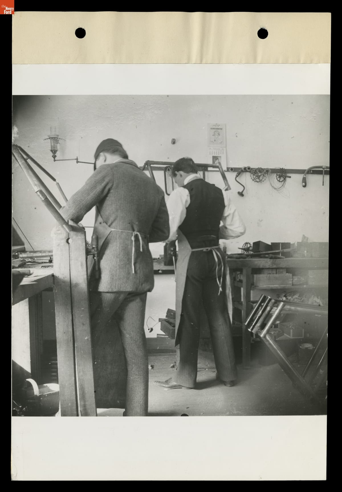 Orville Wright and Edwin H. Sines in Wright Cycle Shop, Dayton, Ohio, 1897