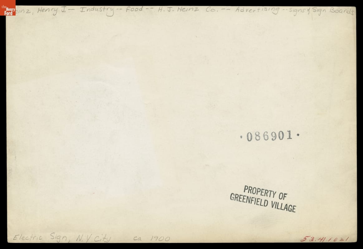 H. J. Heinz Co. Electric Advertising Sign, New York City, circa 1902