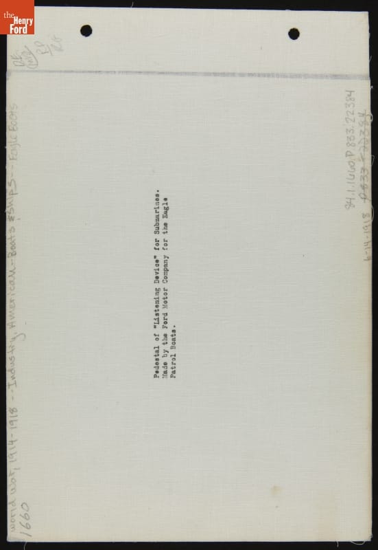 Stealthy attacks from German submarines posed a serious threat to shipping during World War I. With support from the U.S. Navy, Thomas Edison devoted considerable time and effort to developing a reliable method of detecting submerged submarines, either by sound or magnetic field. The first Ford-built Eagle anti-submarine patrol boats were equipped with Edison's detection devices.
