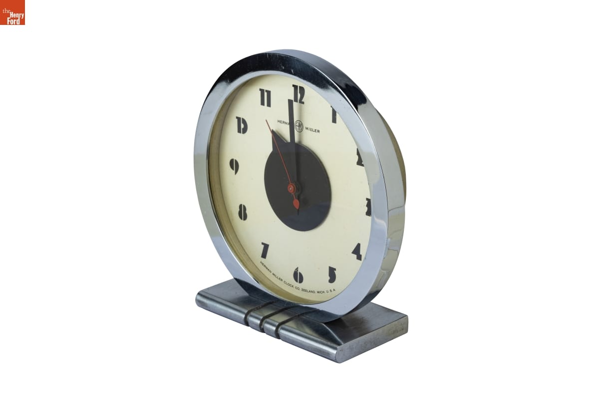 Designer Gilbert Rohde persuaded his new client, the Herman Miller Furniture Company, to participate in the 1933-34 Chicago Century of Progress World's Fair. Rohde designed a suite of furniture and accessories which were exhibited in the "Design for Living" House at the Fair and then manufactured by the company. This clock, the Model 4706 Electric, was shown in the house's primary bedroom.