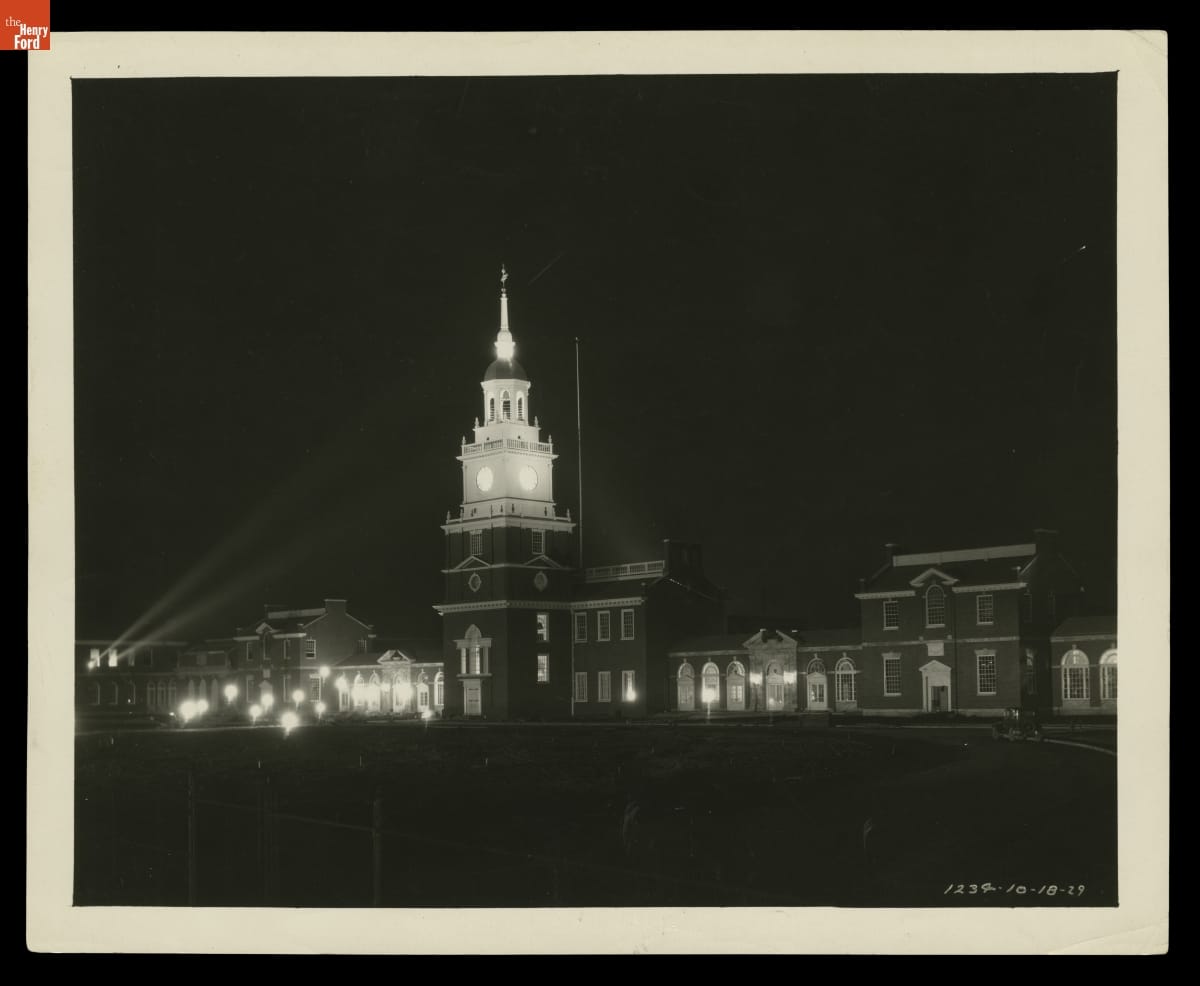 Nighttime Lighting Rehearsal at Henry Ford Museum, Preparing for Light's Golden Jubilee, October 18, 1929