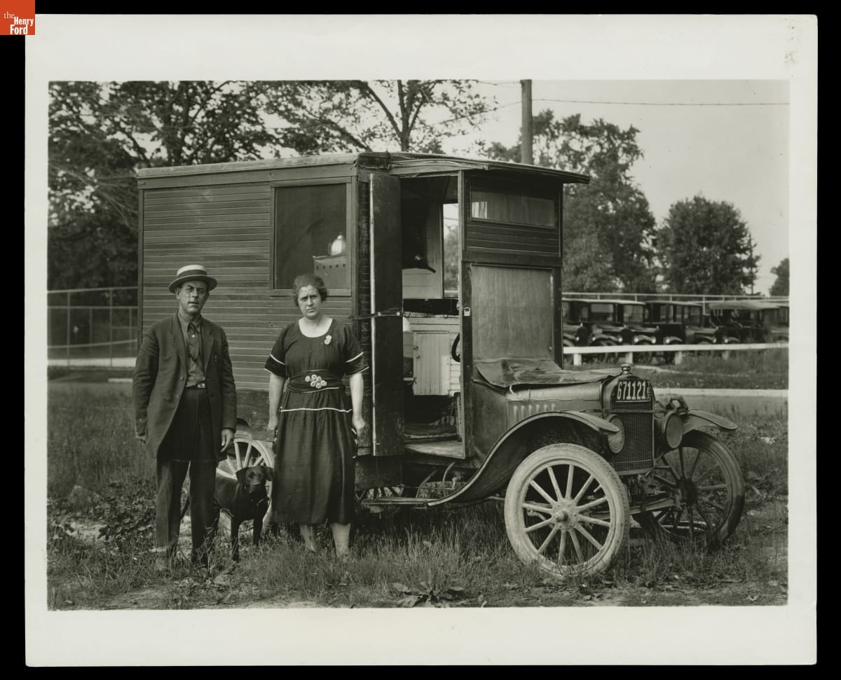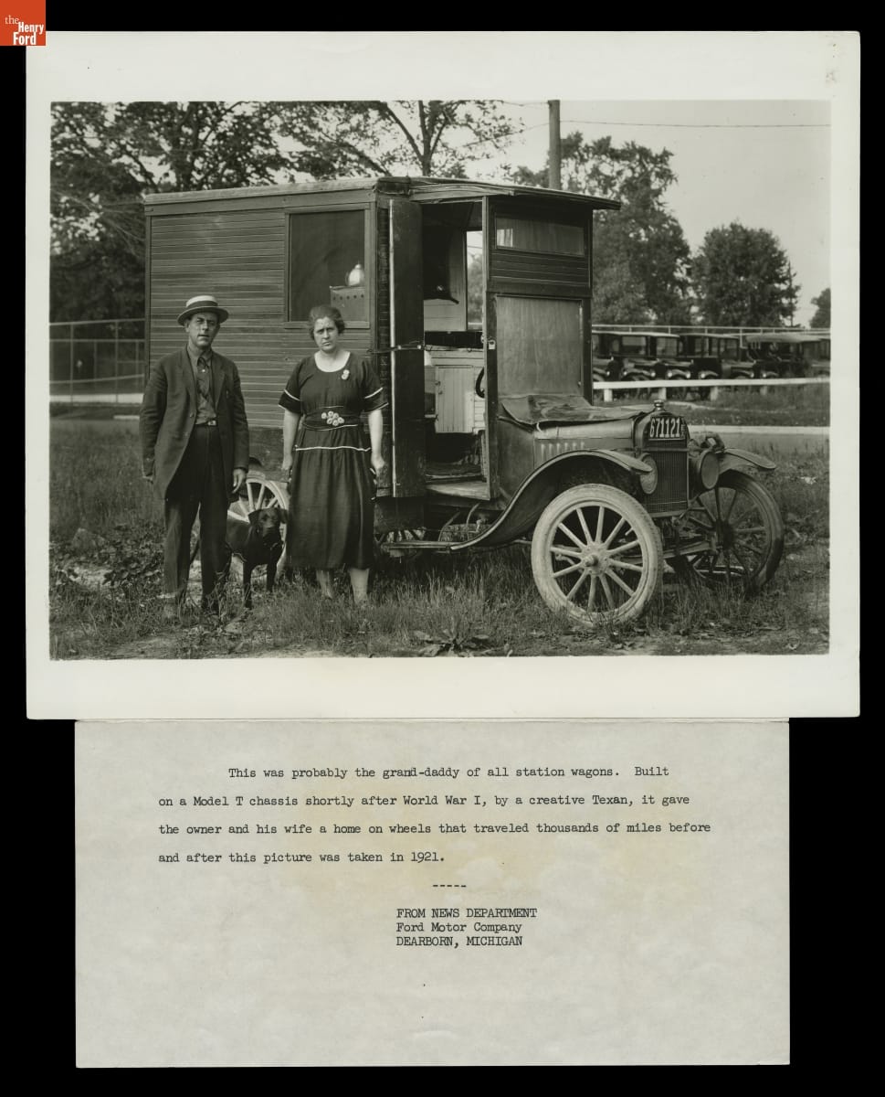 H.D. McCracken, his wife, and his dog used this modified Ford Model T for traveling and touring thousands of miles in the United States. Akin to today's motorhome, the woodwork interior and exterior indicates that McCracken was a creative and inventive craftsman. This photograph documents McCracken's handiwork and the usefulness of the Model T for living on the road.