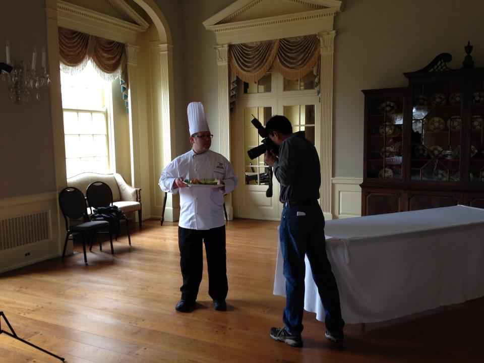 From Chef Mike: "This dish was somewhat modified for our catering and banquet menu. The truffle oil being the most noticeable, also the addition of stock, nutmeg and butter for a richer flavor. In the original recipe the milk was warmed and peanut butter was added, because of it’s delicate nature I roasted my own nuts and created a roux (butter flour) to stabilize this soup."