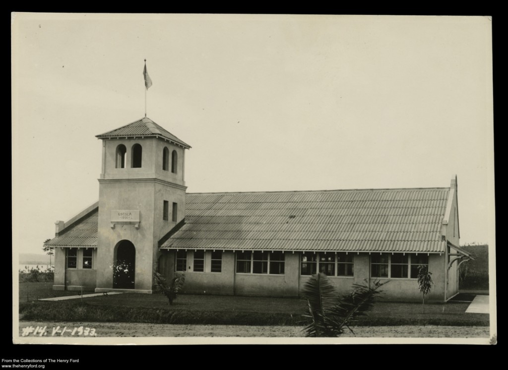 Henry Ford – stubborn and proud and innovative – decided to try again. A new location for a second plantation was selected in 1931, land farther downstream from Fordlandia on the Tapajos River. This new plantation was named Belterra, and from the start it fared much better than Fordlandia ever had – in large part because Ford greatly relaxed his policies of social control that had failed in Fordlandia. He allowed some traditional Brazilian customs to be incorporated into Belterra daily life, such as traditional local eating habits and musical instruments. The second time around, however, Henry Ford wanted to expand his vision for a “Dearborn in the Jungle.” He was willing to loosen up on many things, but one area where he would not budge was the type of educational structure he envisioned at Belterra.