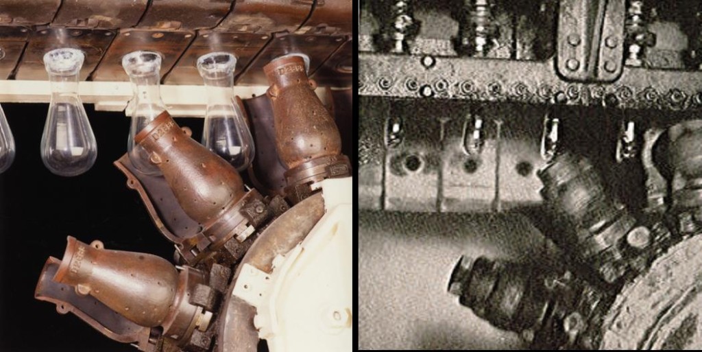 90.349.1 (THF88991). Right: A retrofitted ribbon machine shapes glass ornament bulbs at Corning’s Wellsboro, Pennsylvania plant in 1940. “Popular Science,” January 1941, Benson Ford Research Center.