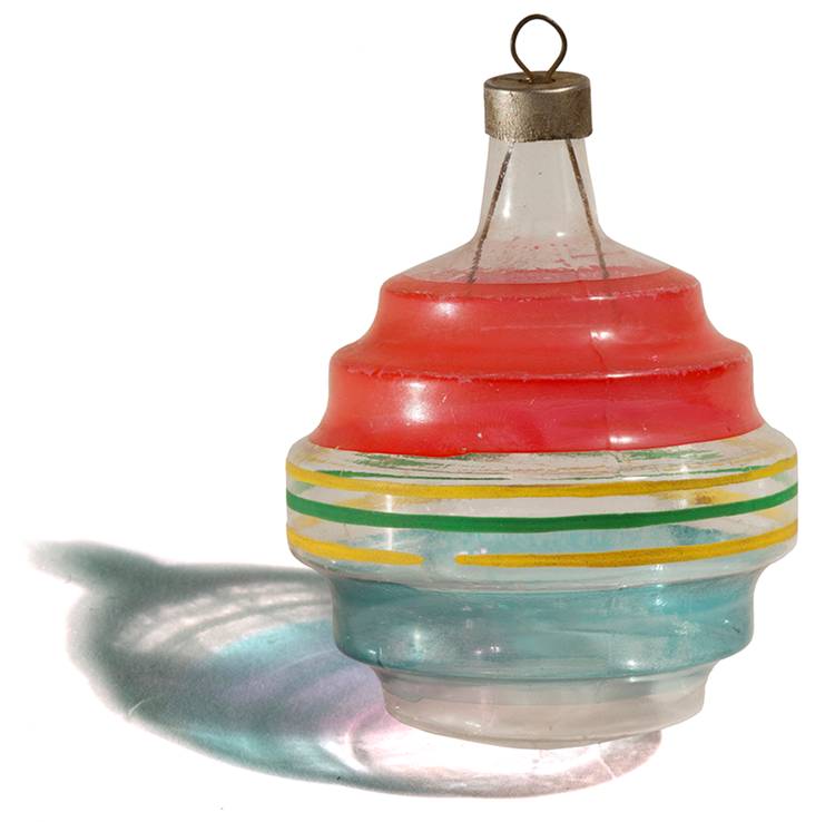 The first domestically-produced ornaments mimicked European imports. The inside of each bulb received a coat of silver lacquer; the outside was tinted with colored dye. Then, after any desired hand decoration, the shiny baubles were topped with tight metal caps.