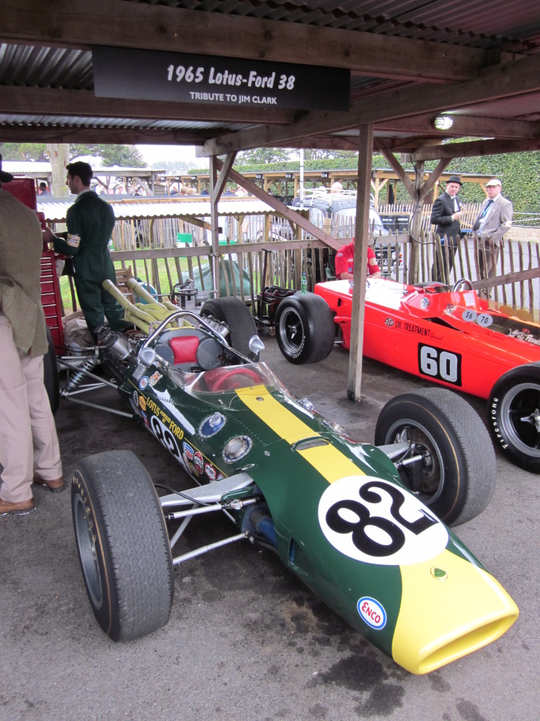 The Lotus-Ford on display in the paddock area.