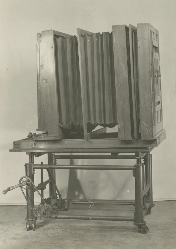 Copper corrosion (shown above) caused by salts in sweat on large camera lens IMLS.2015.132. The lens would have been used on large portrait cameras, like 45.51.1 shown here.