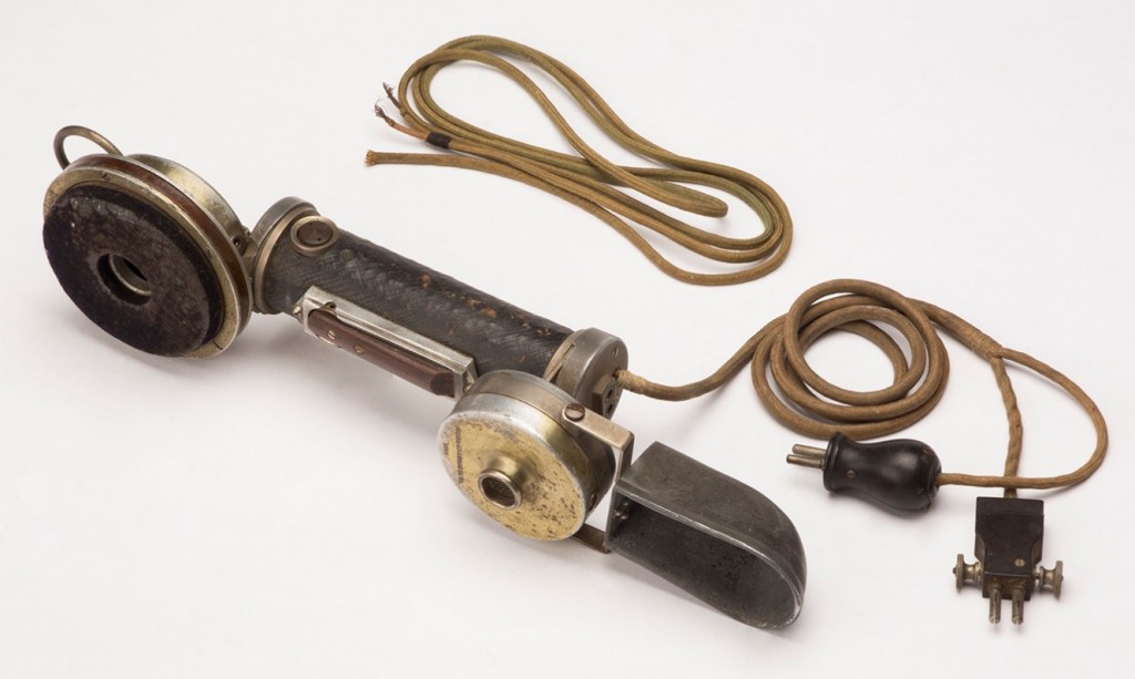 Waxy copper corrosion on telephone handset (2014.0.17.181)
