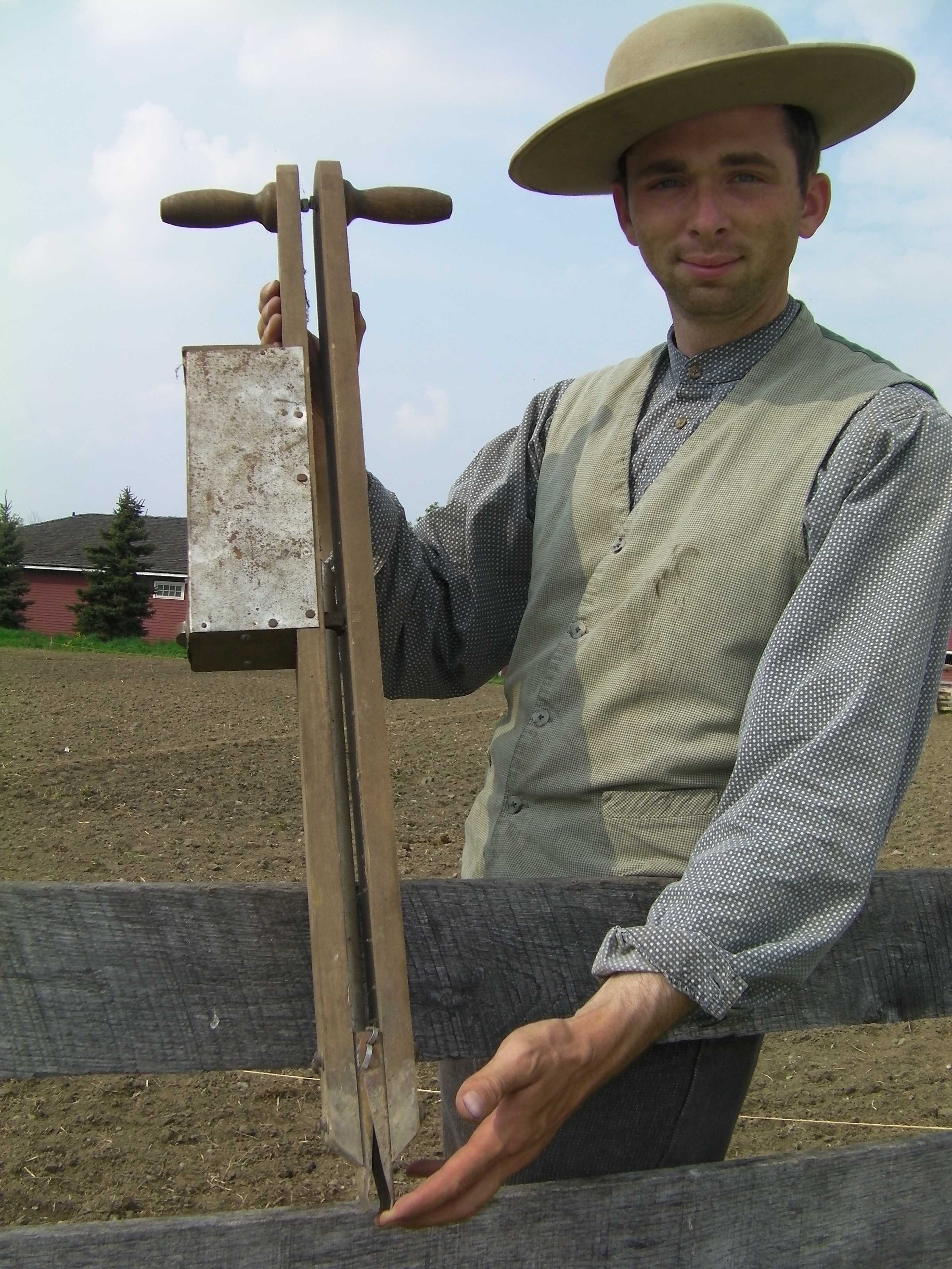 Next came the planting. We planted a very old variety of corn, called Reid’s Yellow Dent, which was used by farmers all over the United States in the late 1800s. The corn is planted by hand using a tool called a corn jabber.