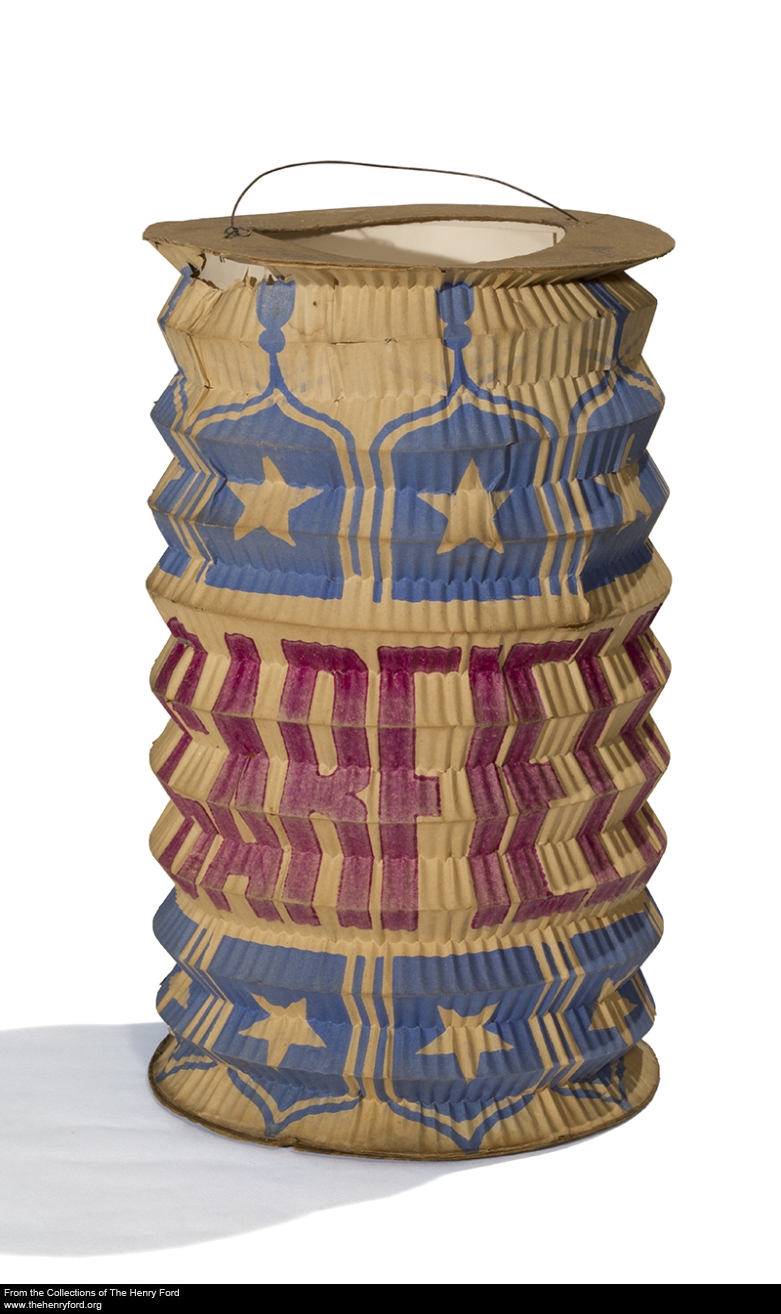 In the 1860s and 1870s, supporters of certain political figures used pleated paper lanterns, lit with candles, during rallies and parades to demonstrate their enthusiasm for their candidate. As one might expect, the delicate paper was often destroyed—or accidentally set ablaze. The Henry Ford has just finished conservation and digitization of a dozen political lanterns from our collections, including this one indicating support for James Garfield and Chester A. Arthur. View all of the restored political lanterns in our digital collections.