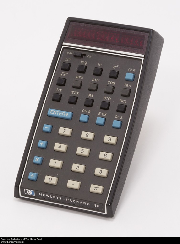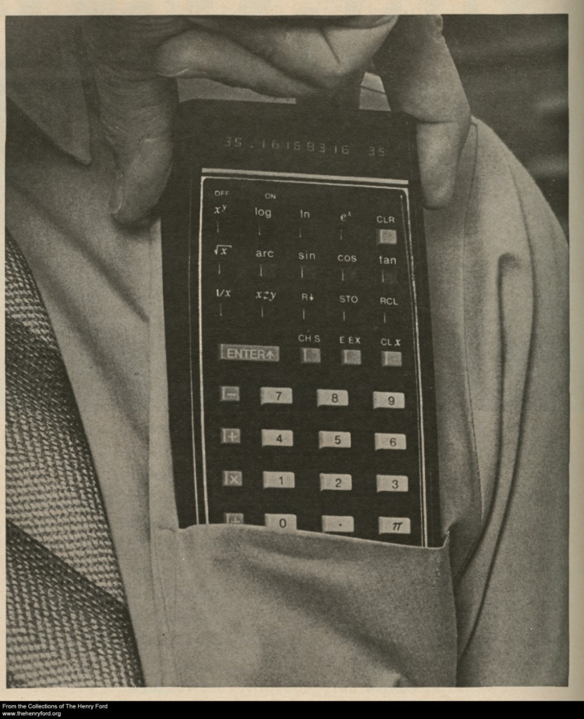 The origins of Hewlett Packard’s HP-35 Scientific Calculator began with a challenge. In 1971, William Hewlett dared his engineers to prove their engineering prowess by miniaturizing the company’s 9100A Desktop Calculator—a forty-pound machine—into a device small enough to fit into a shirt pocket. The calculator’s target size of approximately 6x3 inches was supposedly arrived at by measuring one of Hewlett’s own shirt pockets.