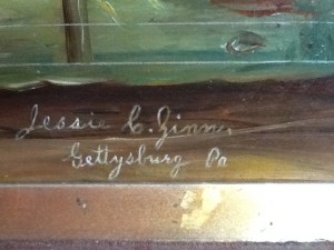 Yet we knew virtually nothing about the painting—how could we tell its story to our visitors? The signature of the artist provided an intriguing clue. It read “Jessie C. Zinn/Gettysburg Pa.” But who was Jessie Zinn? And why did she choose this subject to paint?