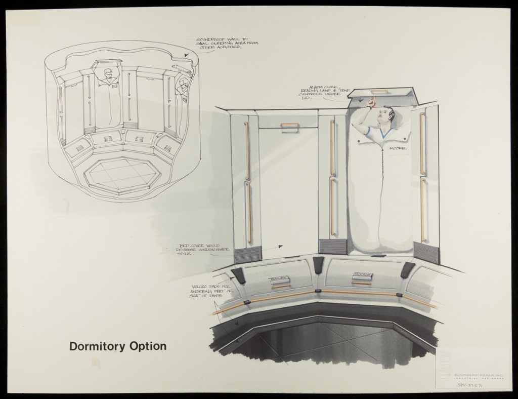 In the early 1980s, Detroit-area industrial design firm Sundberg-Ferar, Inc. worked with the Lockheed Corporation and NASA to develop concepts for a manned space station.