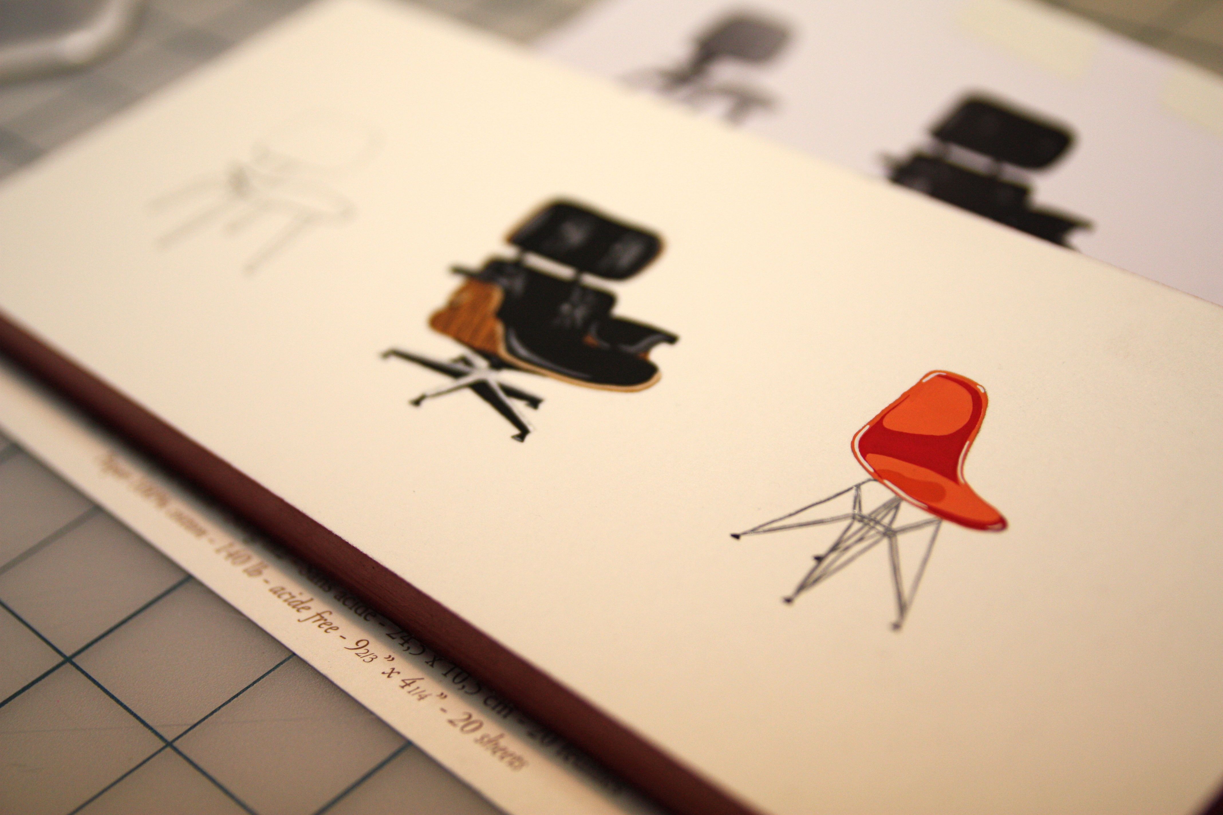 I have always been inspired by everyday things. I loved the notion that when the first Eames chair was in the production process, it was meant to be a mass-produced, affordable chair that anyone could own. I like to think of my artwork in the same manner. I feel that everyone should be able to afford art that they love for their home. Surely, I thought there were other people that felt the same way that I do, and still wanted a bit of Eames in their home, so I started painting a few of my favorite pieces of their furniture.