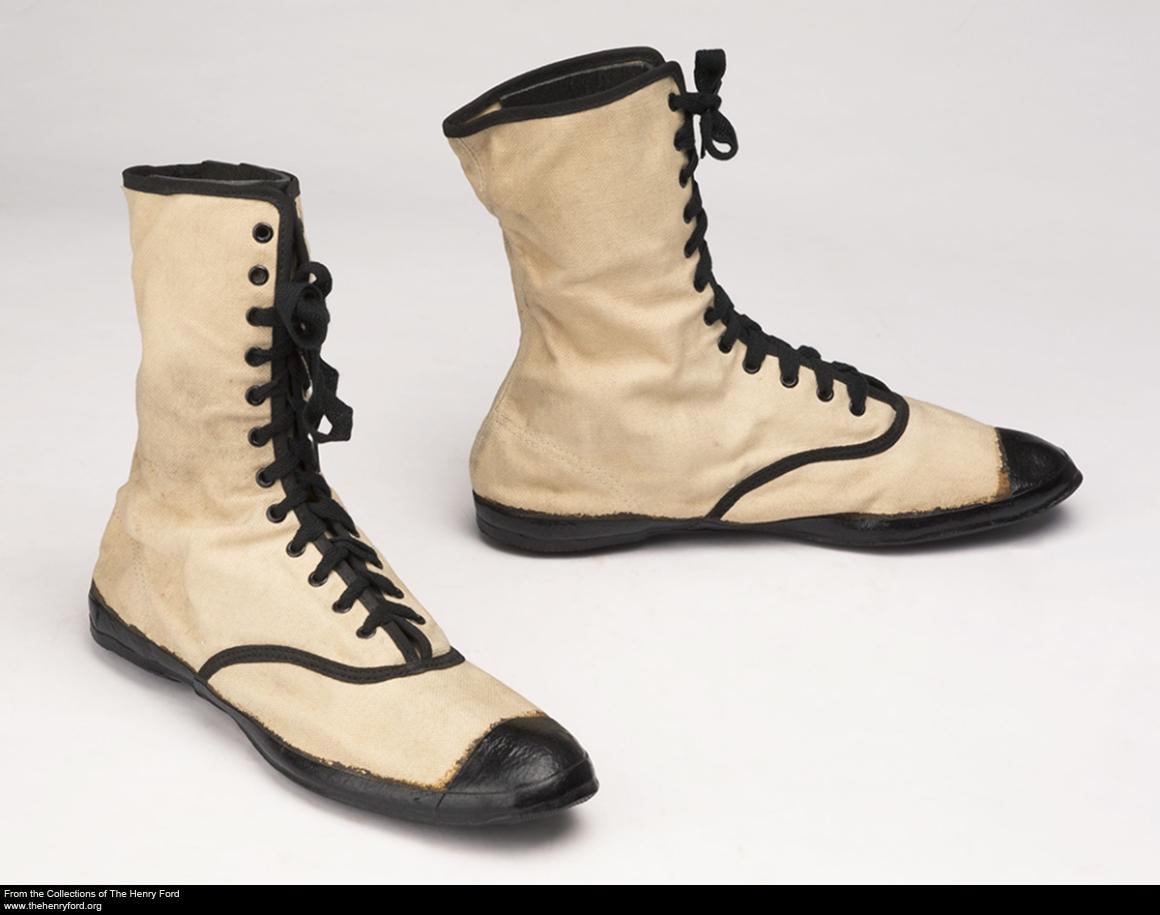 The collections of The Henry Ford contain over a thousand examples of footwear of all types: boots, sandals, pumps, slippers, and more.  We’ve just digitized another six dozen or so pairs from our collections, in a variety of styles dating from the early 19th century through 2008.  One set designed for a very specific purpose is these size 5 1/2 “Nymph” bathing shoes, likely dating from the 1920s.  View close to 300 more pairs of shoes and related artifacts by visiting our digital collections!