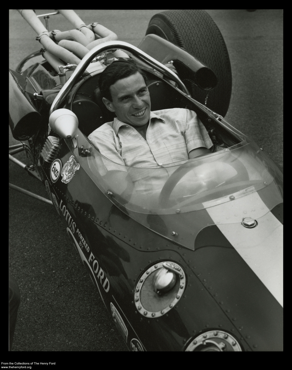 This week, the 2013 Goodwood Revival kicks off in the United Kingdom, celebrating classic auto racing from the 1940s, 1950s, and 1960s in a three-day period-themed festival. The Henry Ford team will be there, and so will our Lotus-Ford race car usually on exhibit in Driving America. In honor of the Lotus and the driver who drove it to victory in the 1965 Indianapolis 500, we’ve digitized several dozen photos of the car, the race, and Jim Clark. View this photo of Jim in the car at Indy, plus other highlights from this digitization effort selected by Matt Anderson, Curator of Transportation, in a set titled Jim Clark and the 1965 Indianapolis 500.