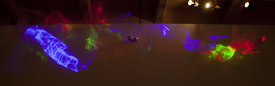 At ArtPrize 2012, Mike talks to daytime visitors to the JW Marriot Hotel, but starts his Stratus 10 exhibit – for obvious reasons - after sundown. The display is very visible from the outside, Mike said. “You can see it from across the river, from the walk bridge and when you’re driving by on the highway.”