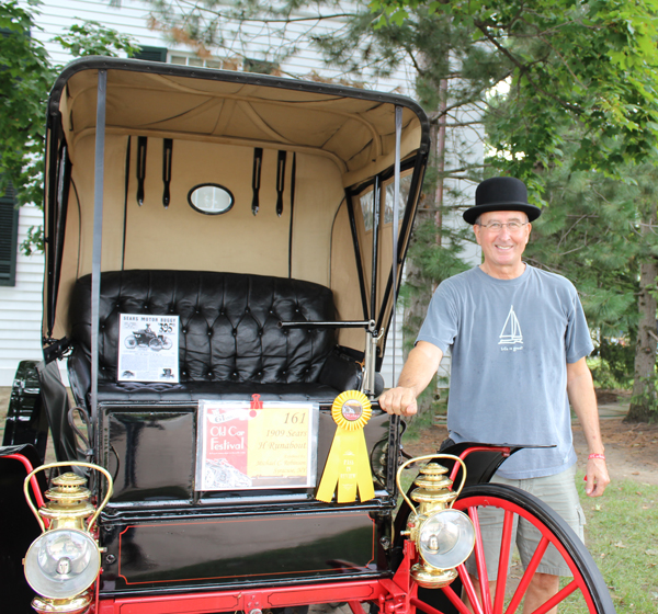 Michael Robinson, from Syracuse, New York, stands beside his 1909 Sears H Runabout. There were 11 Sears Autobuggies at the show.