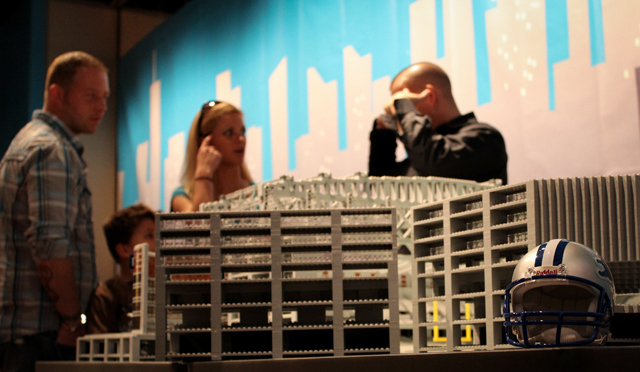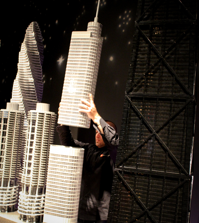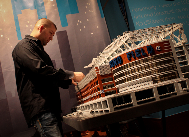 LEGO Certified Professional and artist Adam Reed Tucker works on a LEGO rendition of Ford Field