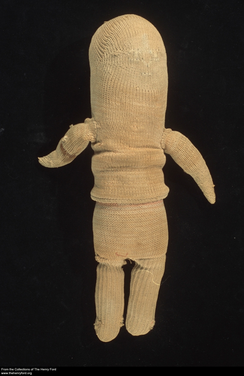 With the holiday season firmly upon us, many people’s thoughts are turning to presents, and what present is more classic than a doll? This week’s collections object is a doll handmade from a woolen sock sometime in the first half of the 20th century. Though it may look a bit less friendly now, with its painted-on face having mostly faded away, it was no doubt a child’s beloved possession. Visit our collections site to find more than 140 dolls and related items, including more than 20 just-added dolls of bisque, cloth, papier mache, and wood, as well as dolls that walk and talk.