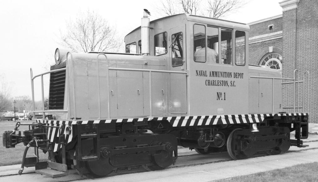 This 1942 G.E. Diesel-Electric locomotive was originally used to shuttle ammunition at the Naval Weapons Station in Charlston, S.C. It is used today to shuttle rolling stock.
