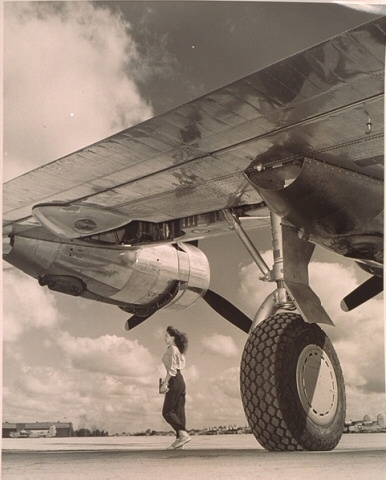 I particularly like the following two photographs that show women employees with the B-24 "Liberator" bombers they helped to build. I think the enthusiasm of the women in photo #P.833.80544.6 and the confident stride of the woman in photo #P.833.80180.1 are indicative of the pride and economic independence women felt as productive members of the workforce. The image of these women posing with their "Liberators" is also a fitting metaphor for the future women's movement whose seeds were arguably sown here.