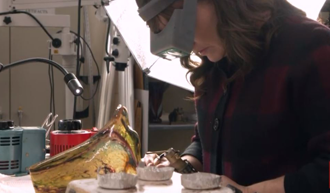 Watch as a conservator restores a once-broken Art Glass lampshade