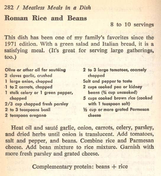 Hippie lifestyles of the 1960s encouraged Americans to think vegetarian in the late 20th century. This cookbook, first published in 1971, gave tips for cooking with non-meat protein-rich foods like grains, beans and peanuts instead of meat.