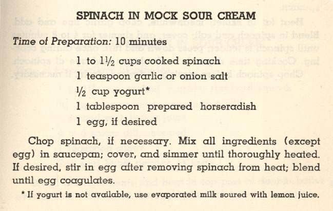 Spinach in Mock Sour Cream